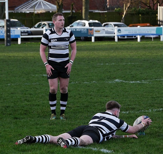 Scarborough came back at the ‘black and whites’ and kept the ball well through the phases. Park held and it was some sterling work in defense that brought the arrival of our second try. Jonny Dubois disrupted a Scarborough ruck, catching player with ball in hand at the pick-up point and successfully holding him aloft until the scrum was awarded in Parks favour. A ‘hit up’ from Sean Williamson and ‘pop’ had Park on the front foot before a Scarborough player was penalised for holding on. Scrum Half Rural Meharg tapped and went and suddenly we were in open ground. Michael Langlands took advantage creating the try for Seb Reece to score his second. The conversion was taken. 14 nil.